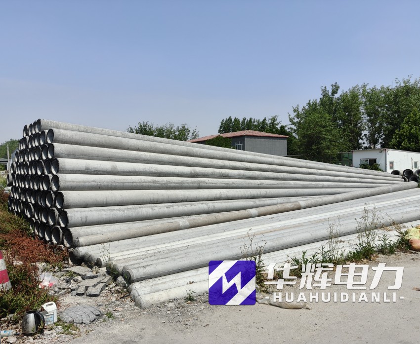 8米东成镇水泥电线杆通常采用钢筋混凝土离心成型工艺,杆体呈锥形结构,梢径150mm-190mm,根径230mm-270mm,壁厚40mm-50mm。根据标准GB/T4623-2014,产品混凝土强度等级不低于C40,主筋采用HRB400级钢筋,配筋量根据抗裂弯矩要求设计,标准抗裂弯矩可达12-18kN·m,破坏弯矩不小于24kN·m。杆体重量约0.5-0.8吨,运输安装便捷,适合人工或小型机械施工。